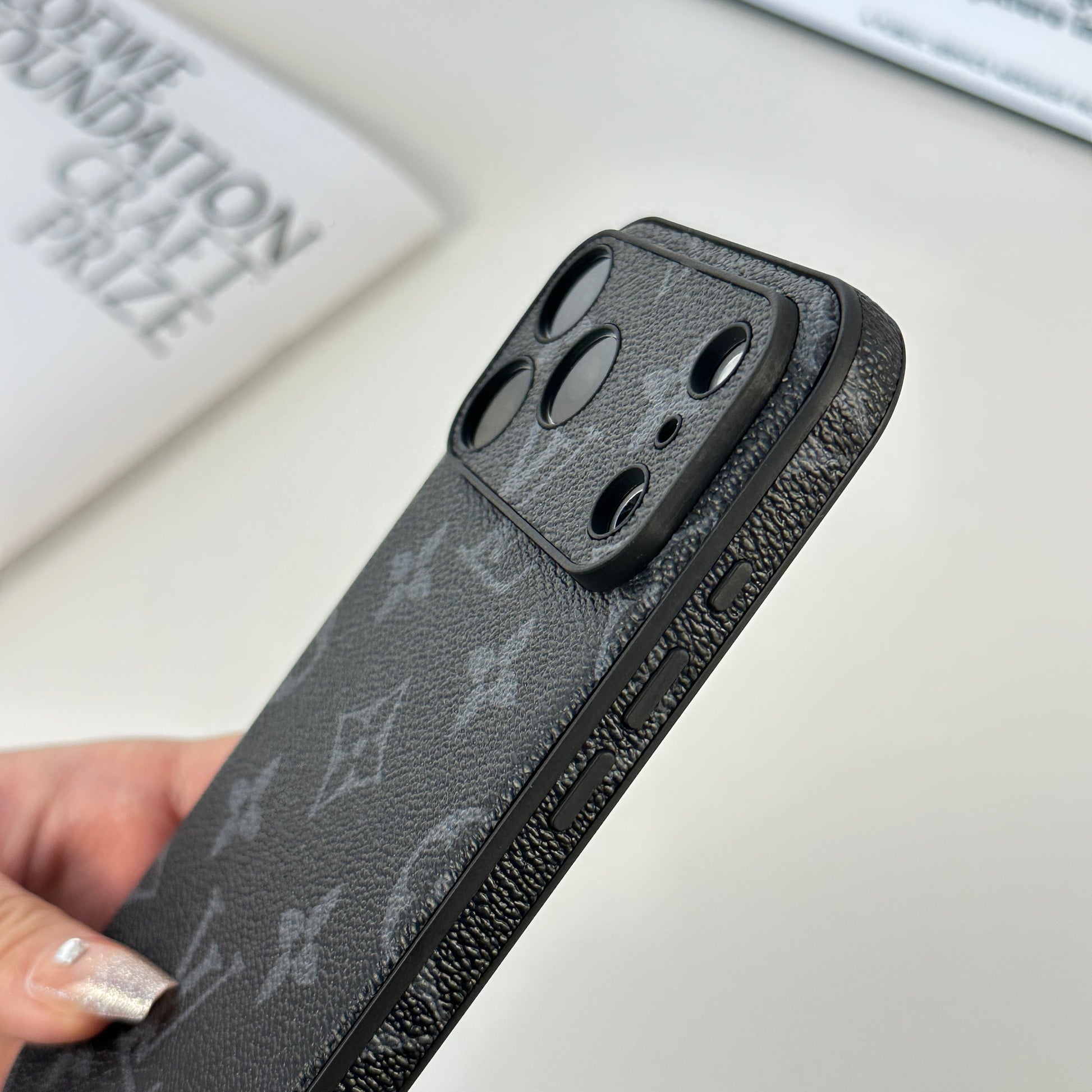 Luxury monogram iPhone case with black printing for iPhone 17 series. Combines elegant design, practical protection, and timeless style for everyday use.