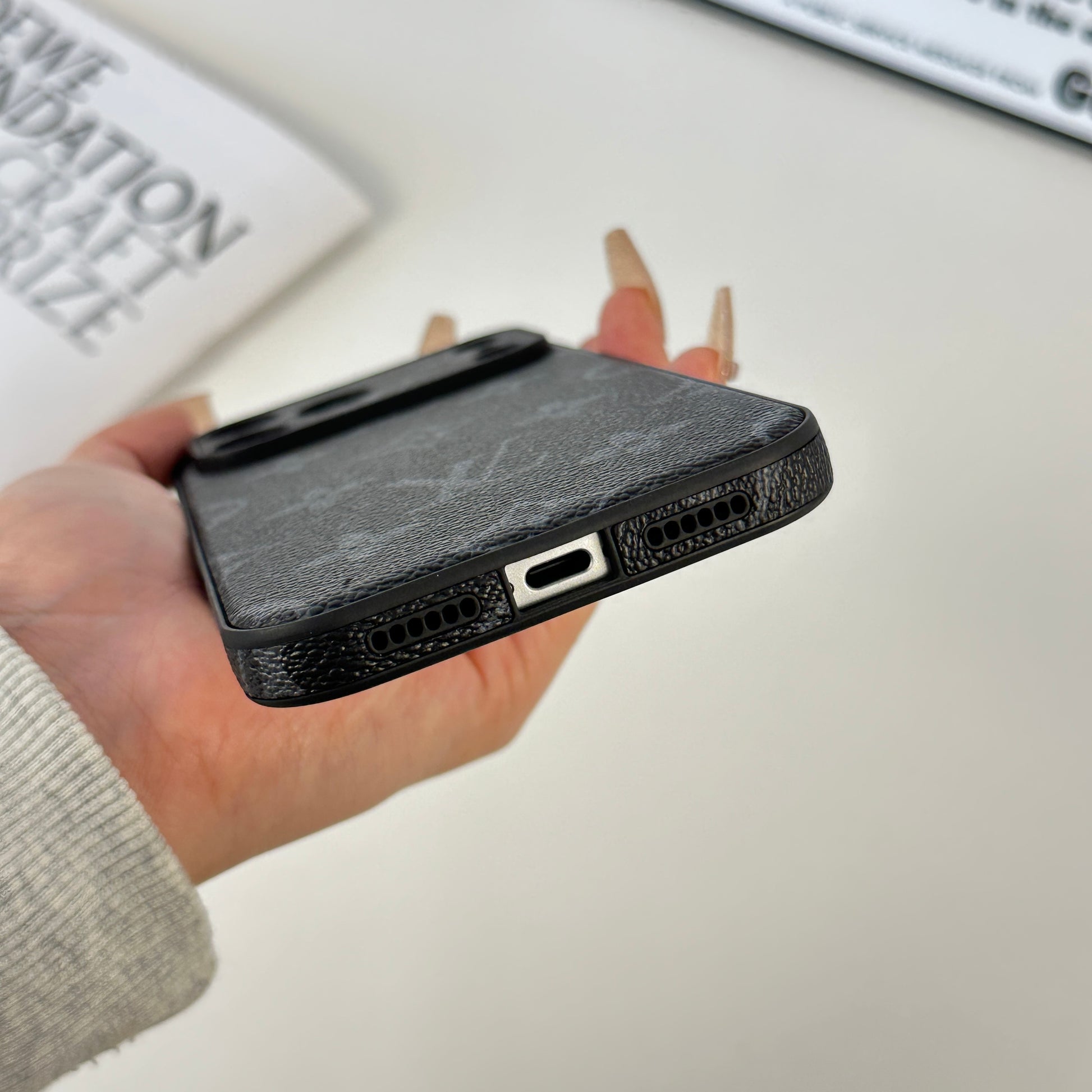 - Black Monogram Printing: Elegant black print adds a stylish and sophisticated accent to your device.