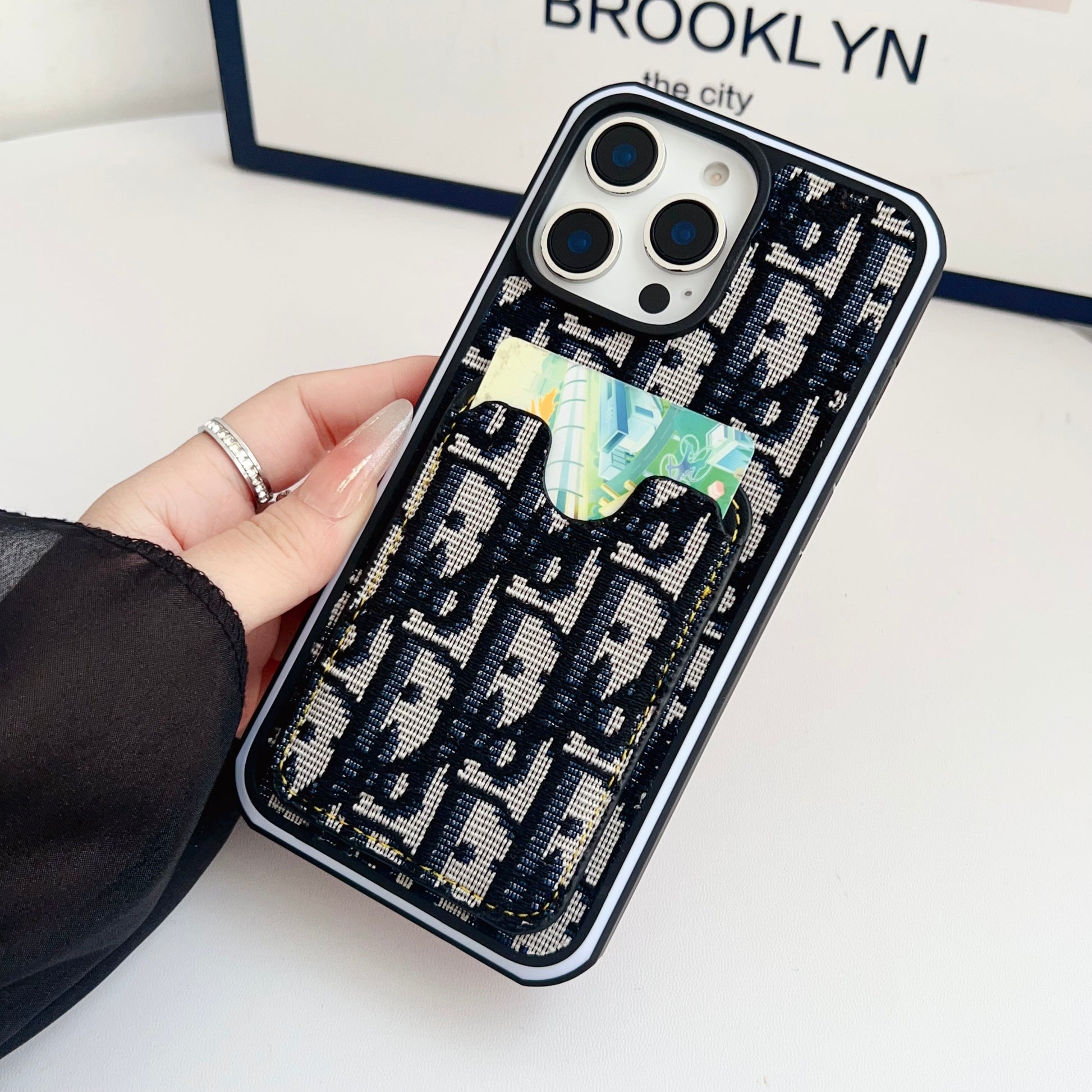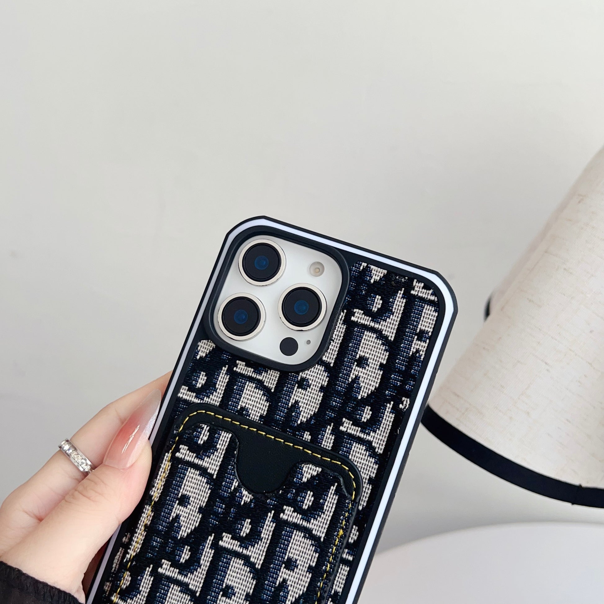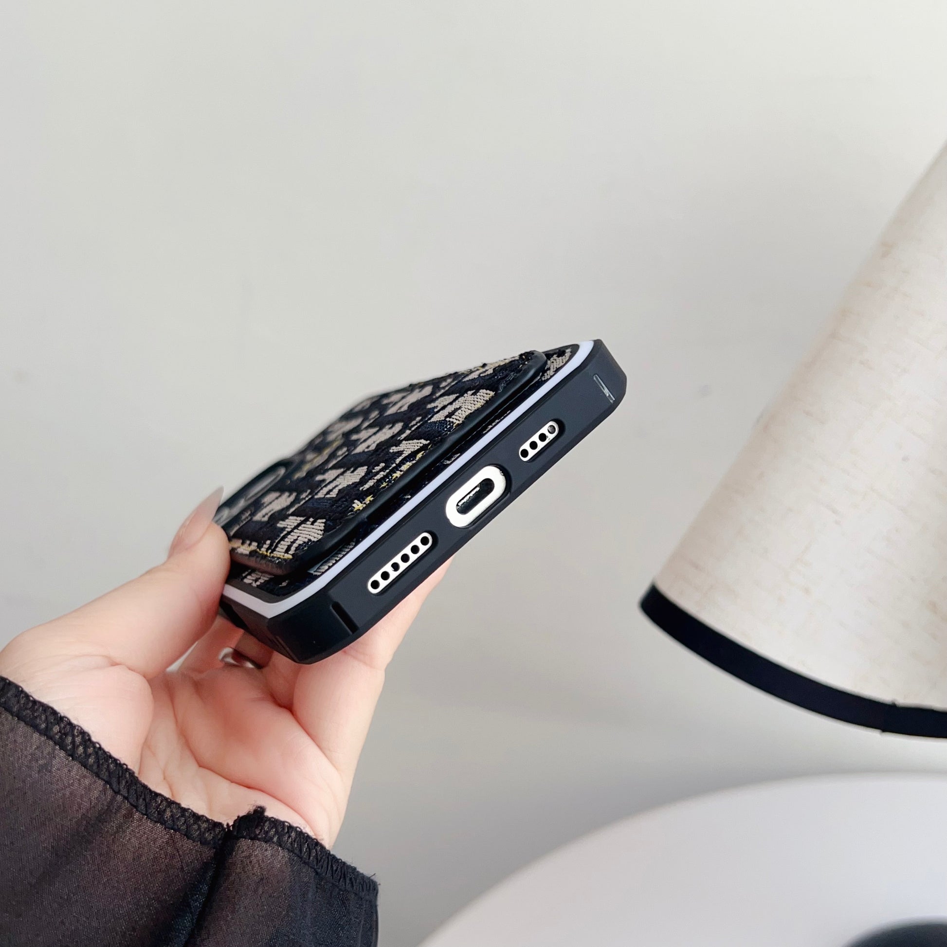 This fabrics CD iPhone case with card holder combines refined craftsmanship with functional design. Made from premium fabric material, it offers secure card storage, dependable protection, and the sophisticated style of Dior’s latest creation.