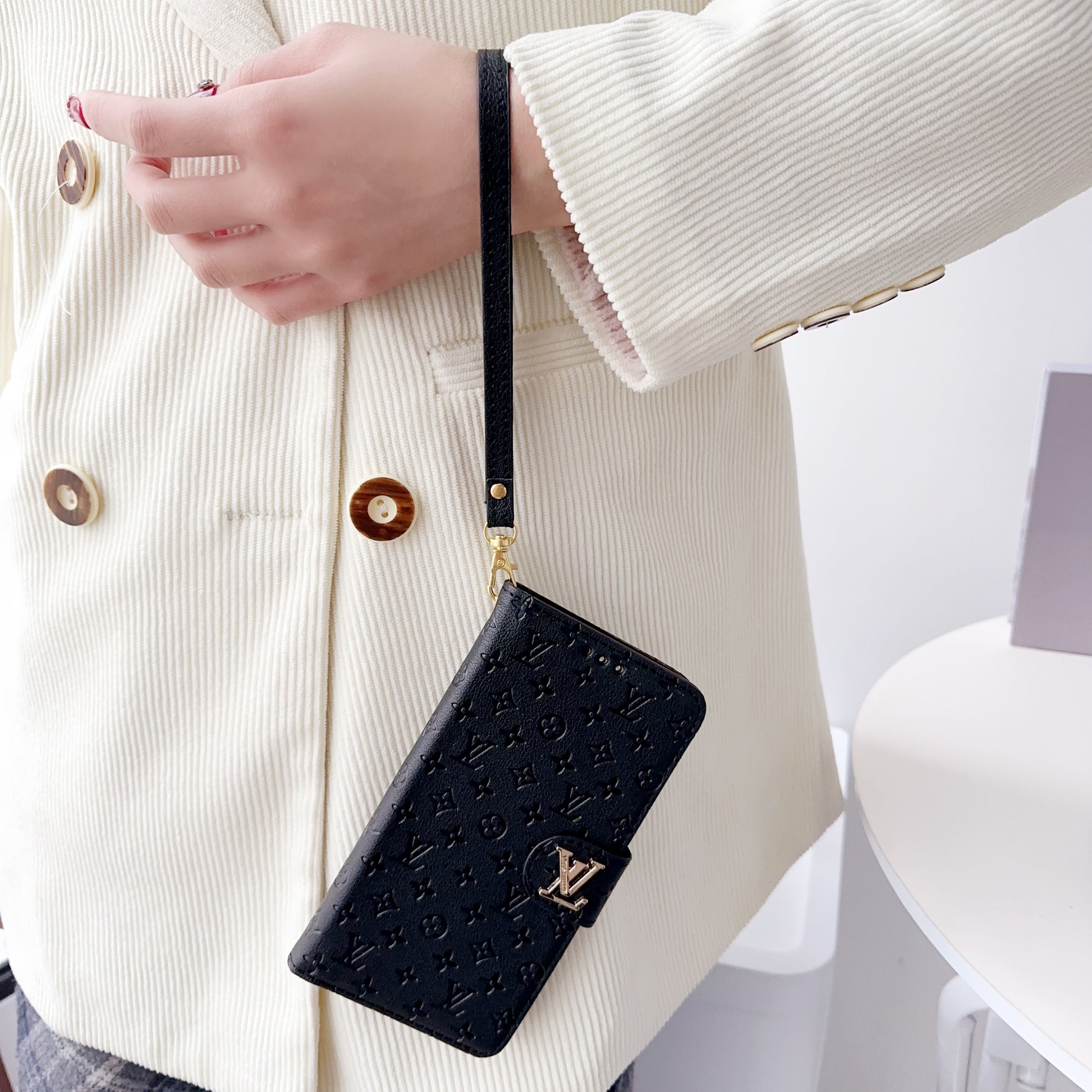 This black leather folio monogram iPhone case combines refined luxury with daily functionality. Featuring a built-in card holder and matching strap, it delivers premium protection and timeless elegance.