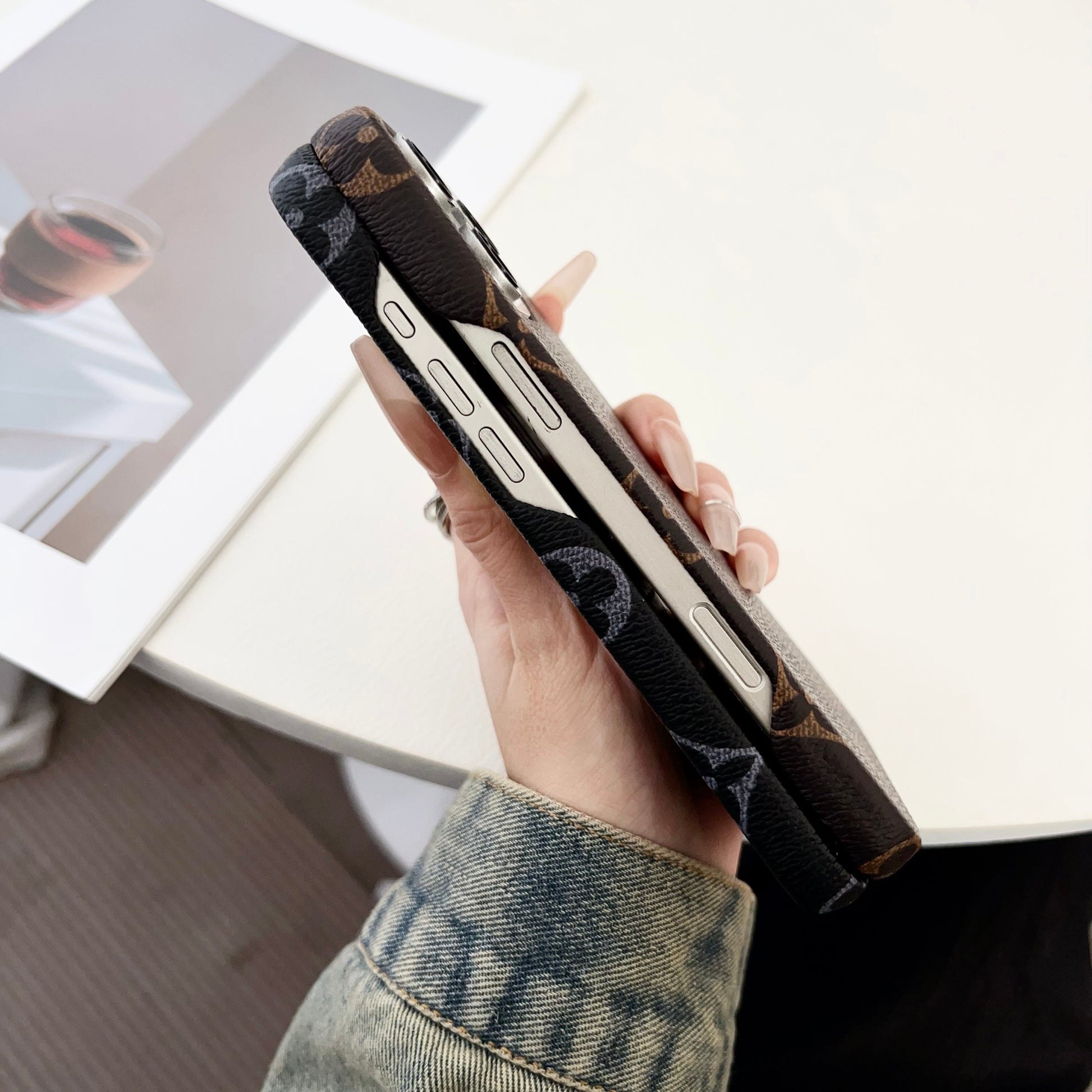 The Leather Monogram iPhone Case Black Printing combines timeless luxury with modern protection. Crafted from premium leather, it features elegant black monogram prints that elevate your everyday style while keeping your device safe.