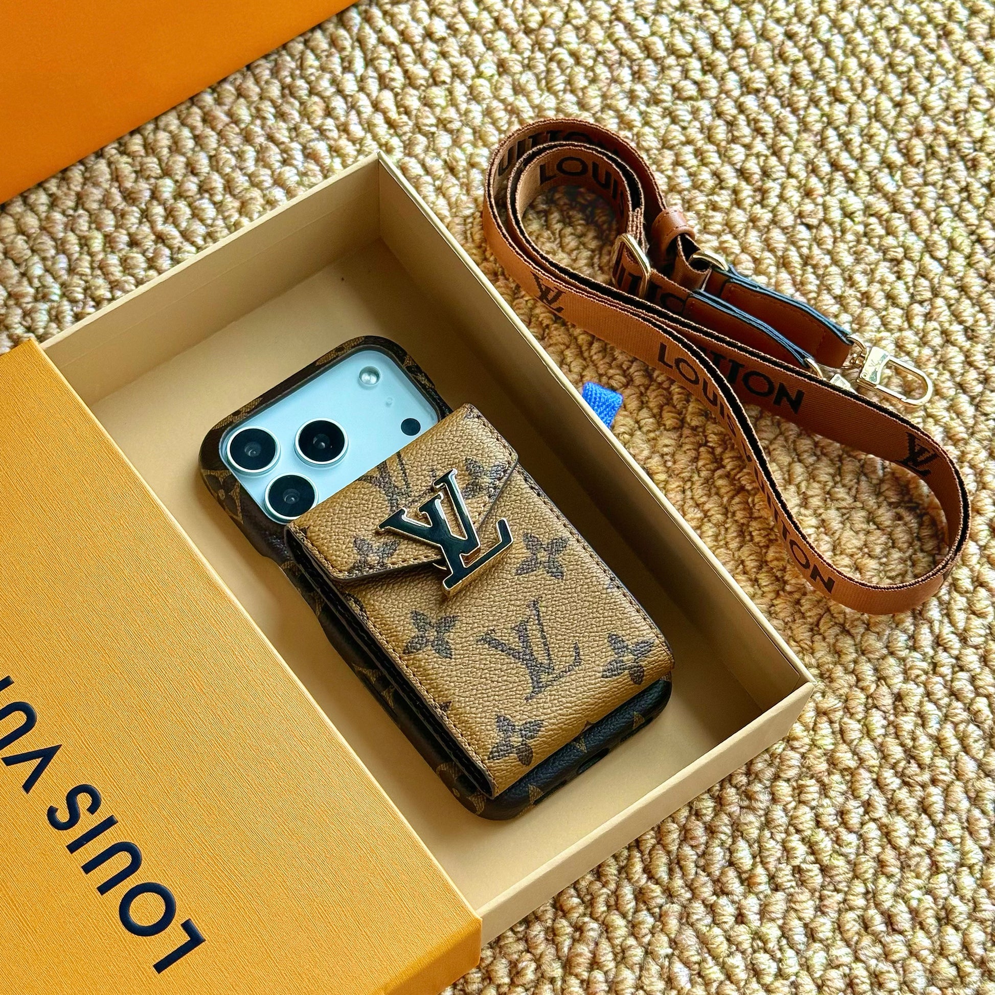 This Leather Monogram iPhone Case with Card Holder and Strap for the iPhone 17 Series combines elegance and functionality. Made from premium leather, it features a secure card slot, durable protection, and a stylish monogram design with a convenient strap for everyday use.