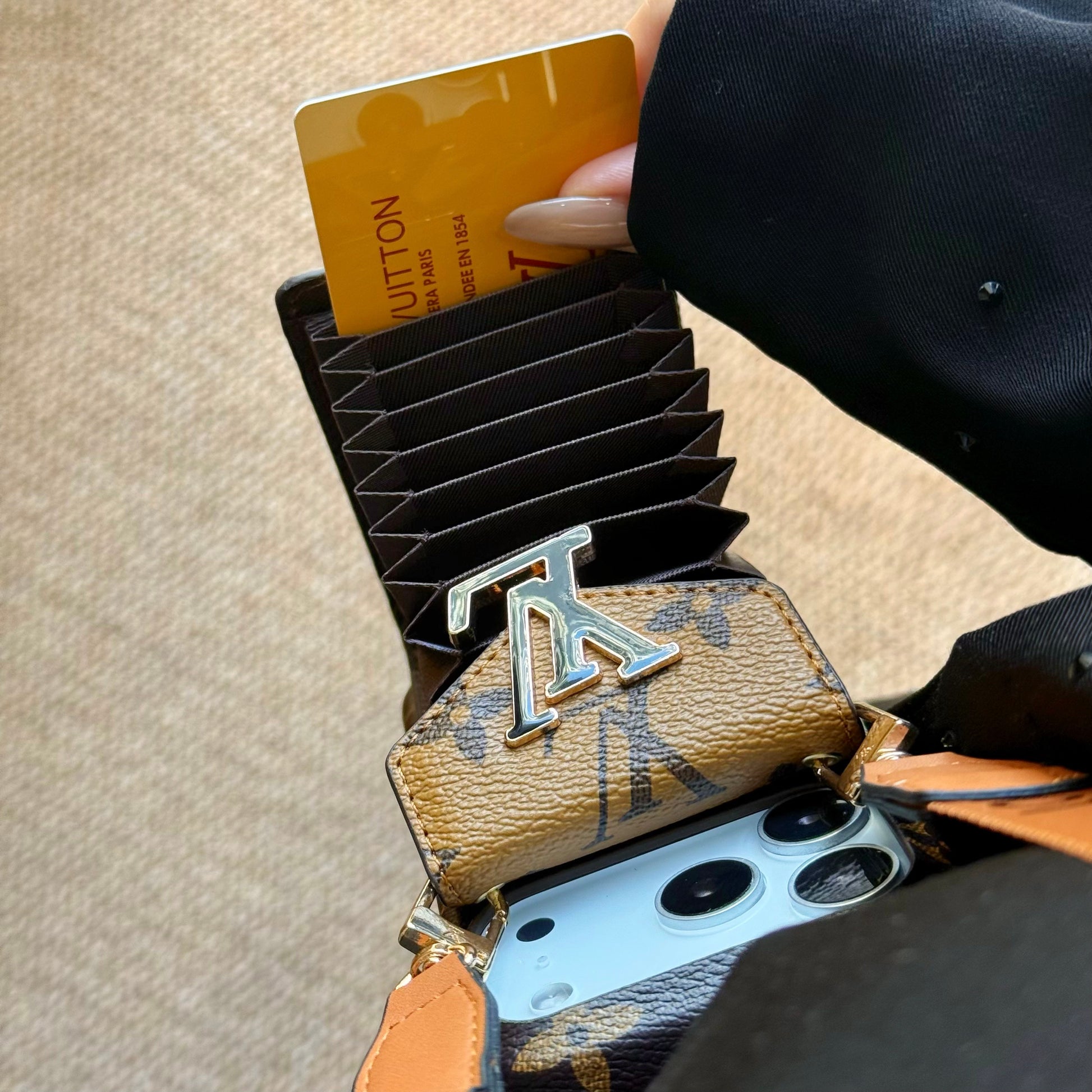 Leather Monogram iPhone Case With Card Holder And Strap For iPhone 17 Series-CYLV029