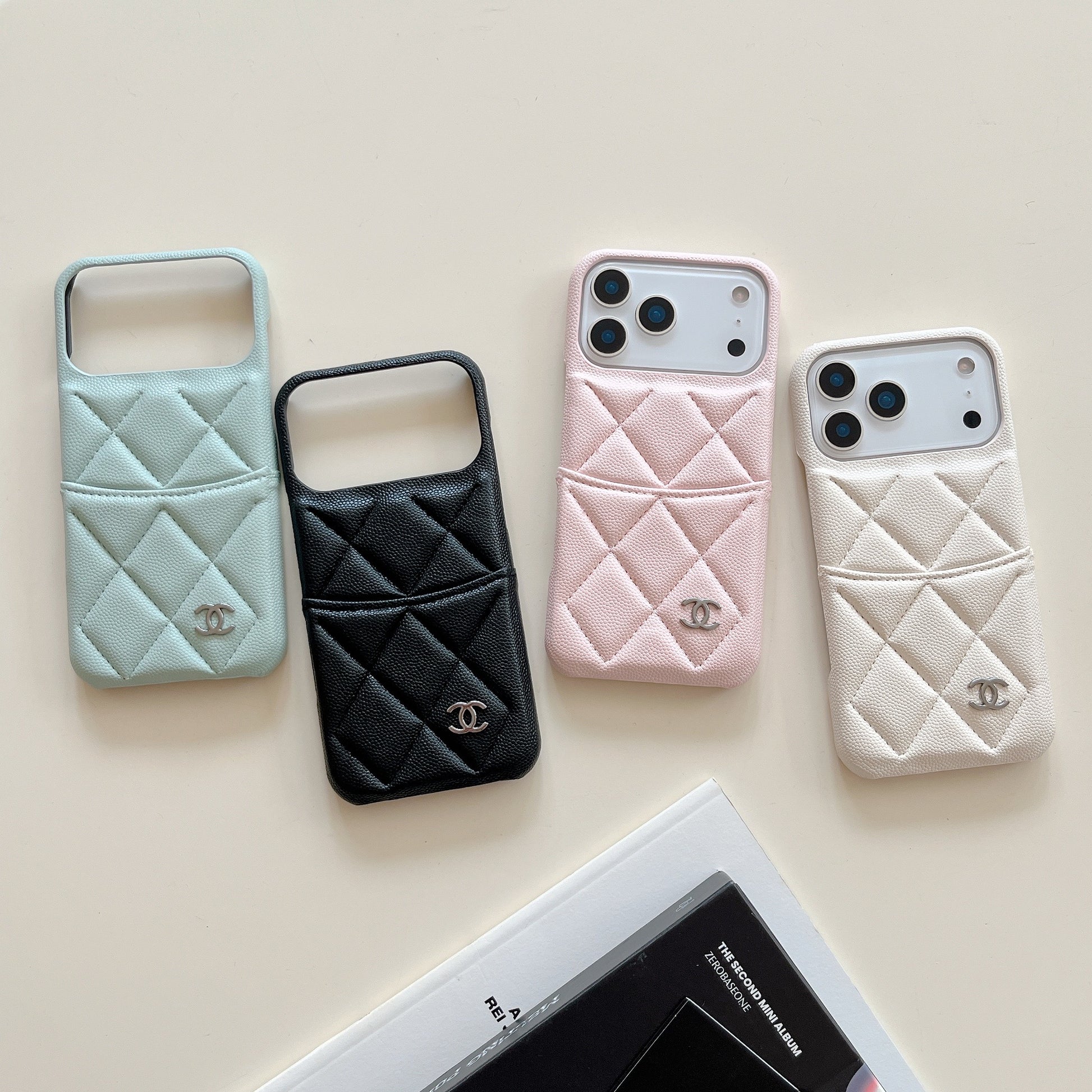 This Luxury Leather CC iPhone Case with Card Holder in Black for the iPhone 17 Series offers sophisticated style and practical functionality. Crafted from premium leather, it features a secure card slot, durable protection, and a chic CC-inspired design.