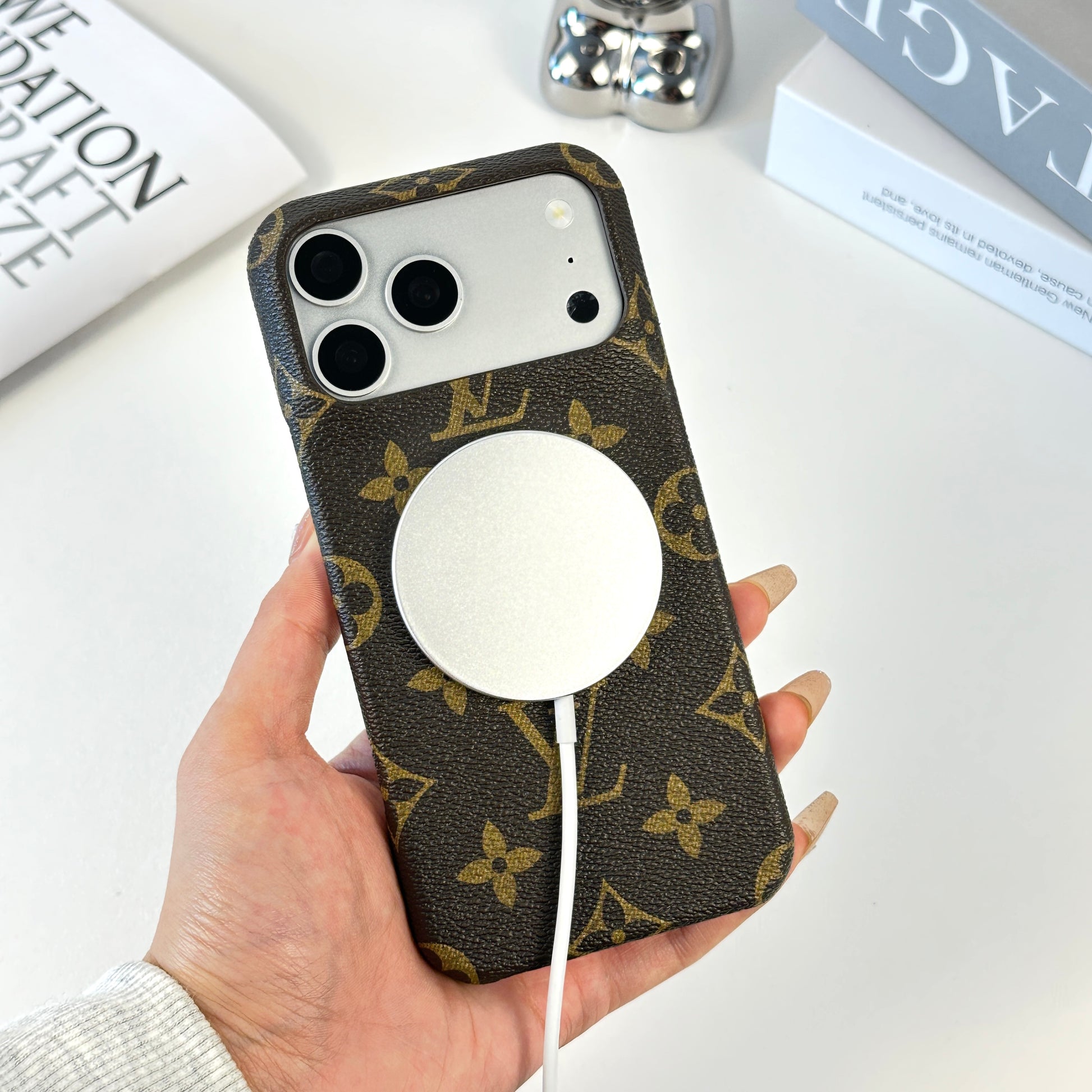 Premium Leather Monogram Magnetic iPhone Case (Compatible With MagSafe) for iPhone 17 Series-CYLV037 Big Printing is crafted from high-quality leather with a bold monogram finish. Designed for strong magnetic alignment, it ensures seamless MagSafe compatibility while delivering refined style and reliable everyday protection.